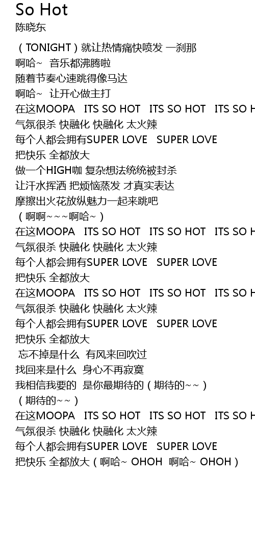 | [00:42.78] | zài zhè MOOPA ITS SO HOT ITS SO HOT ITS SO HOT |