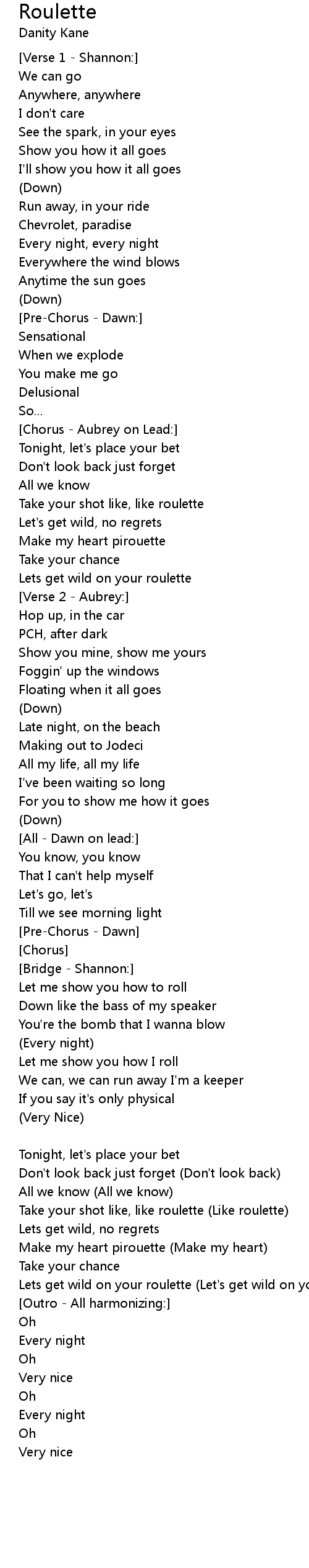 [Outro - All harmonizing:] |