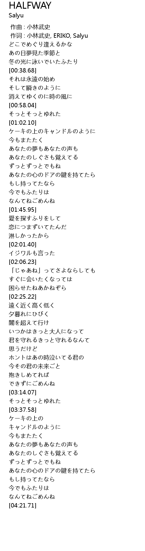 | [00:01.00] | 作词 : 小林武史, ERIKO, Salyu |
