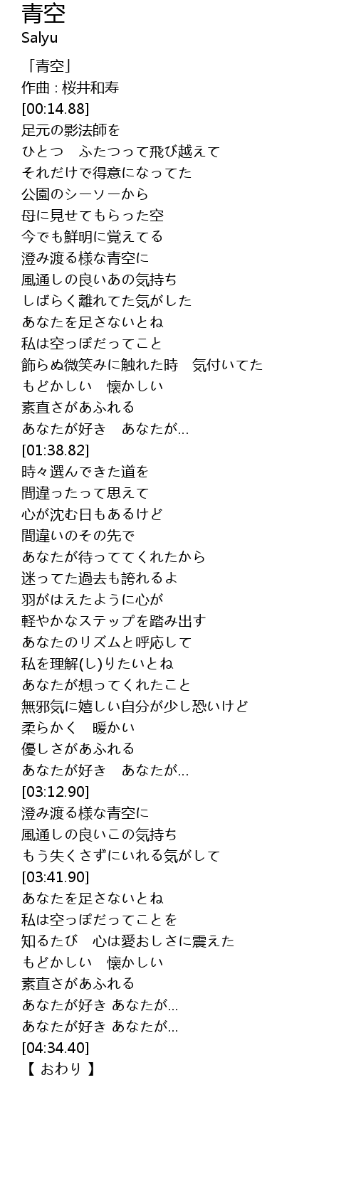 | [03:55.76] | 知るたび 心は愛おしさに震えた |