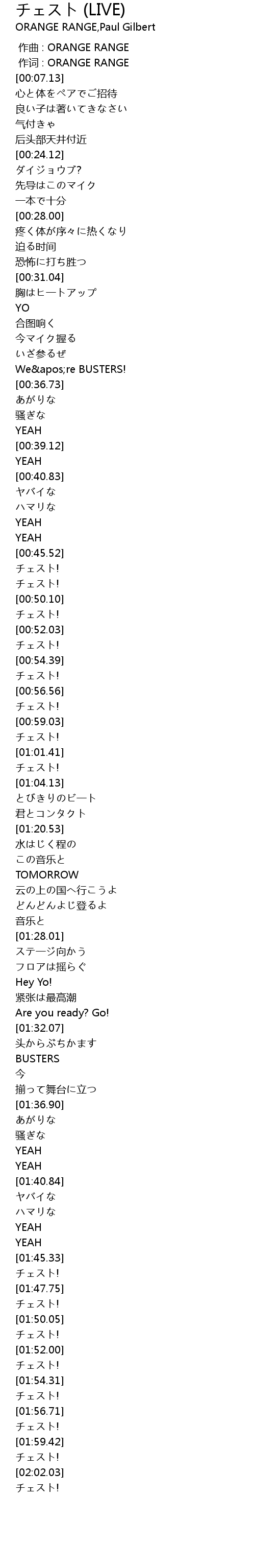 | [00:01.00] | 作词 : ORANGE RANGE |
