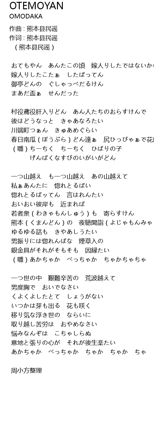 | 作词 : 熊本县民谣 | |