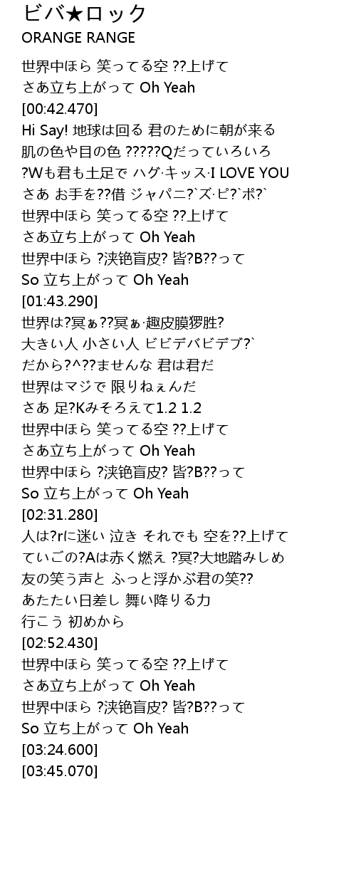 | [02:57.230] | 世界中ほら 笑ってる空 ??上げて |