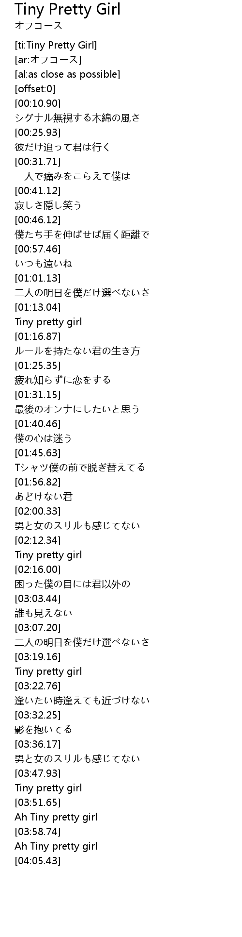 | [04:01.42] | Ah Tiny pretty girl |