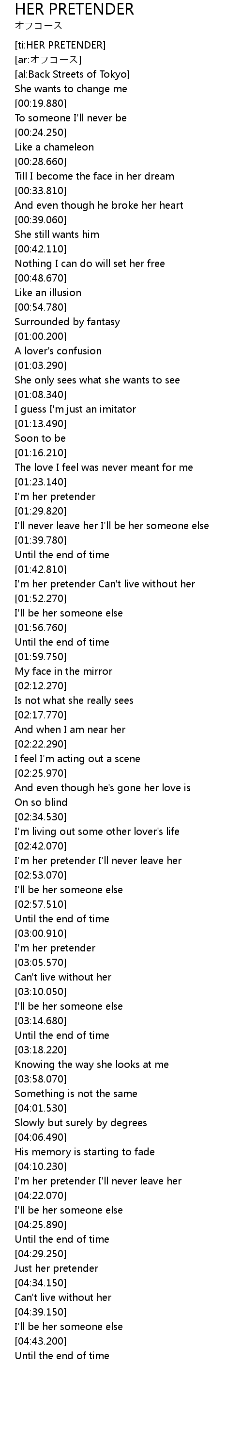 | [01:44.930] | I' m her pretender Can' t live without her |