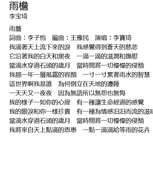 | 詞曲︰李子恆 編曲︰王豫民 演唱︰李寶琦 | |