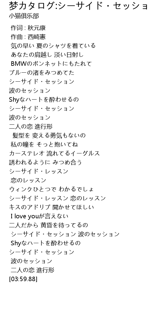 | [03:41.12] | シーサイド・セッション |