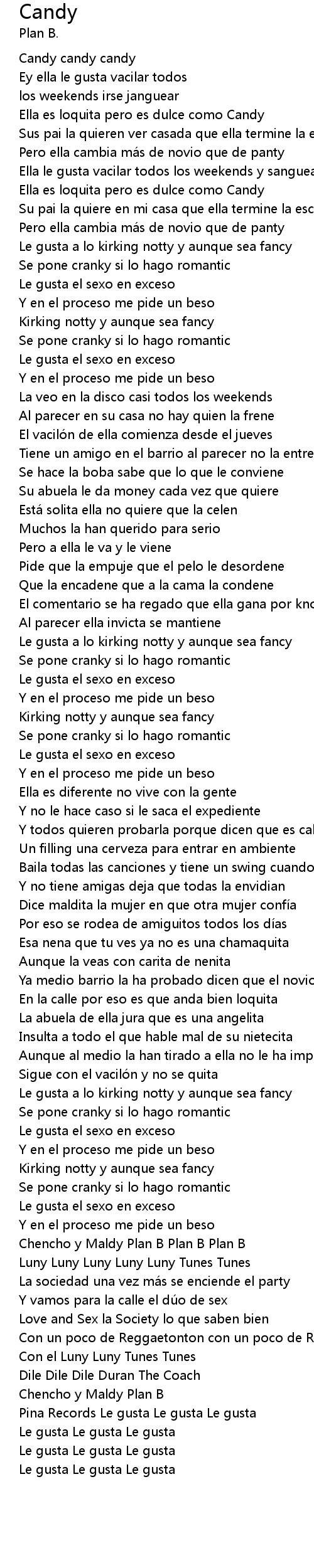 | [00:22.36] | Ella es loquita pero es dulce como Candy |