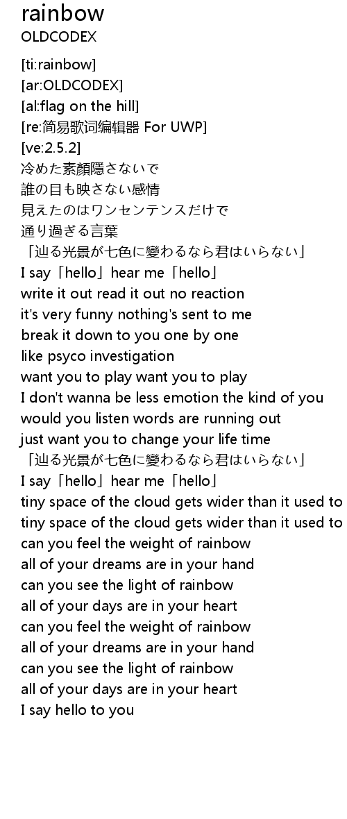 | [02:03.00] | I say「hello」hear me「hello」 |