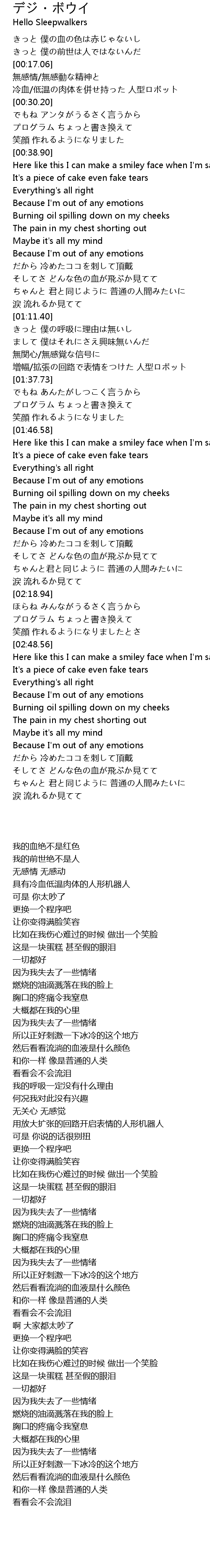 | [00:23.45] | 冷血/低温の肉体を併せ持った 人型ロボット |