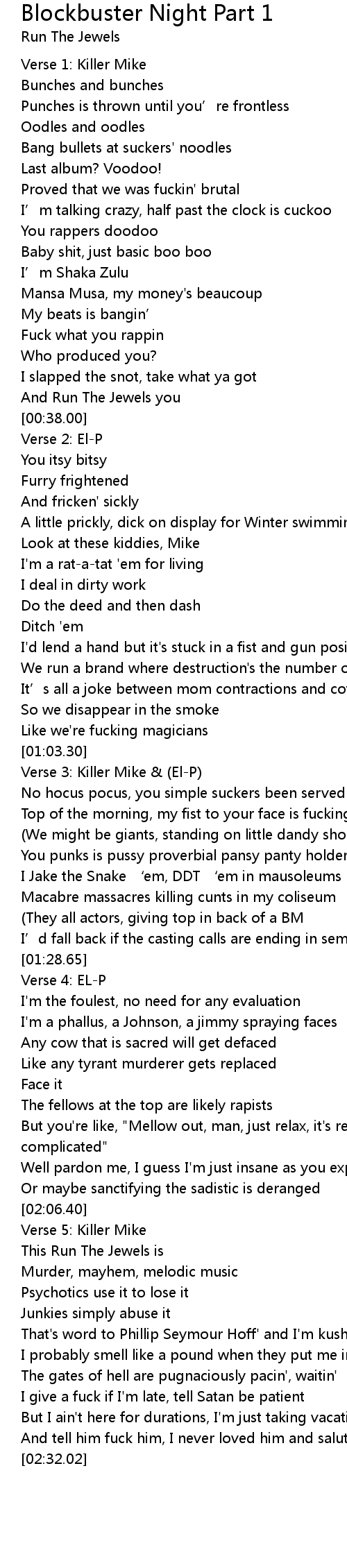 | [01:03.35] | Verse 3: Killer Mike & (El-P) |
