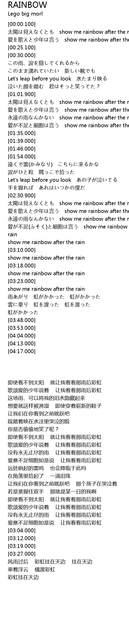 | [02:53.000] | ài bù zú xì bāo yán show me rainbow after the rain |