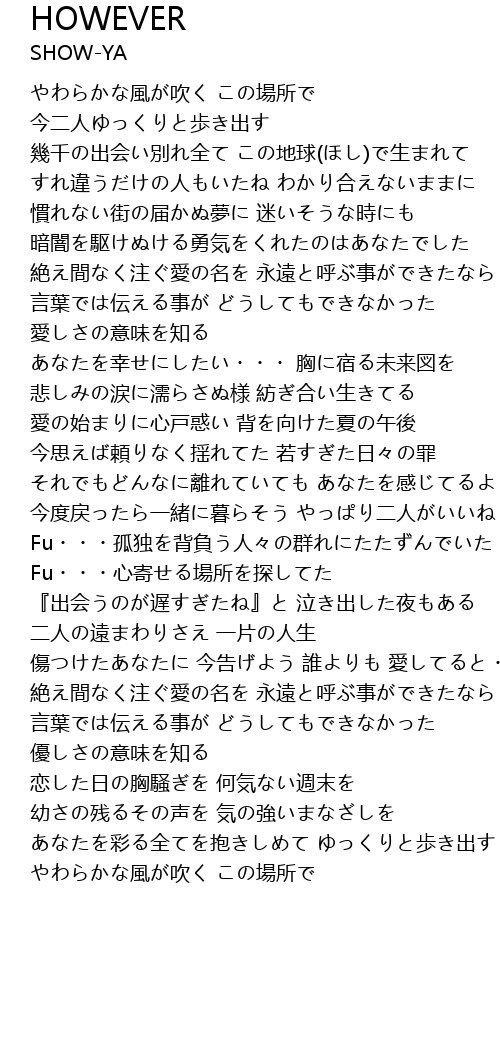 | 傷つけたあなたに 今告げよう 誰よりも 愛してると・・・ | |