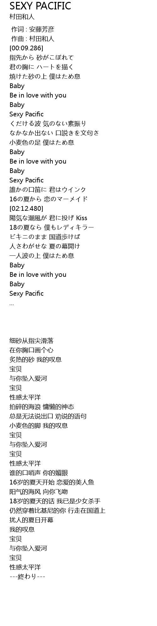 | [00:44.343] | 焼けた砂の上 僕はため息 |