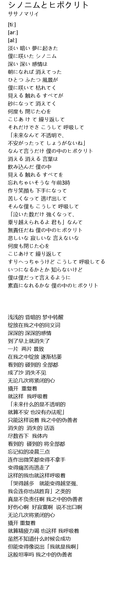 なんて言うだけ 僕の中のヒポクリト |