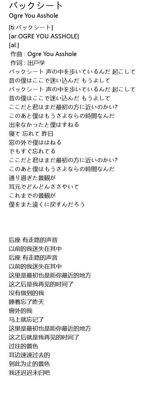 | [00:00.00] | 作曲 : Ogre You Asshole |