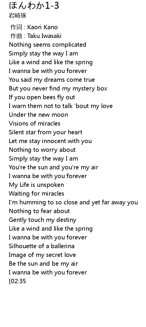 | [00:00.000] | 作词 : Kaori Kano |