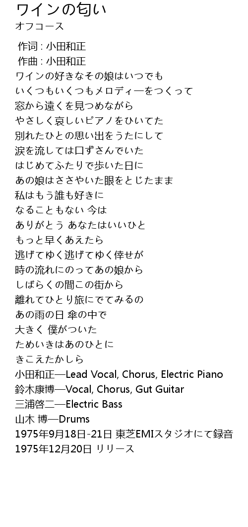 | [02:56.75] | 小田和正—Lead Vocal, Chorus, Electric Piano |