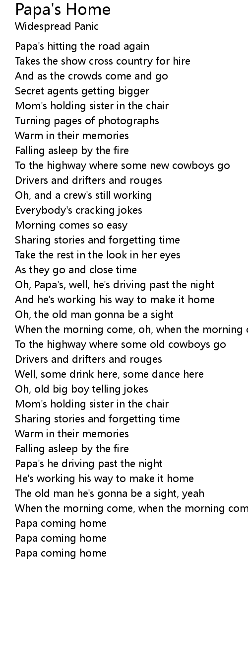 Oh, Papa's, well, he's driving past the night |