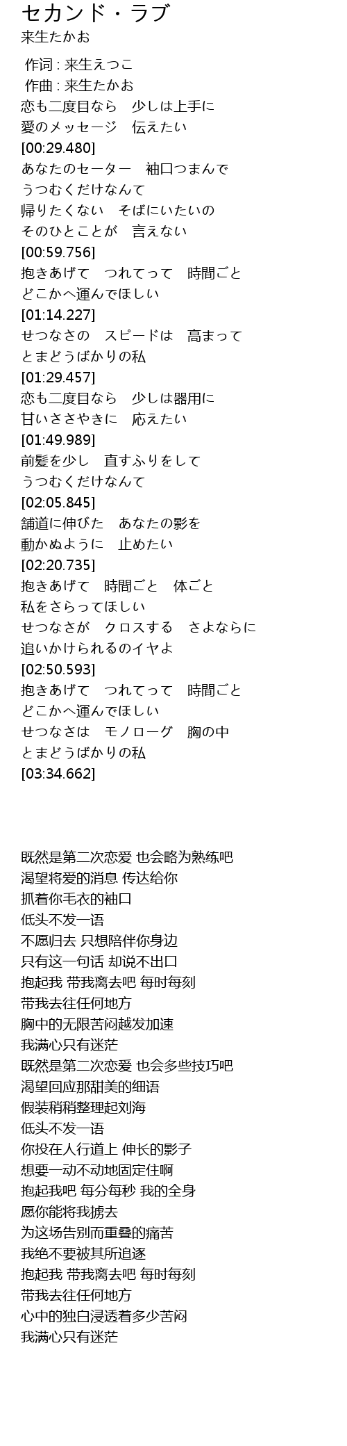 | [00:45.179] | 帰りたくない そばにいたいの |