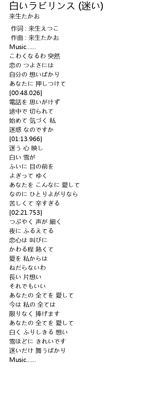 | [00:01.000] | 作曲 : 来生たかお |