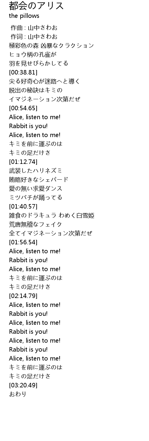 | [00:57.18] | Alice, listen to me! |