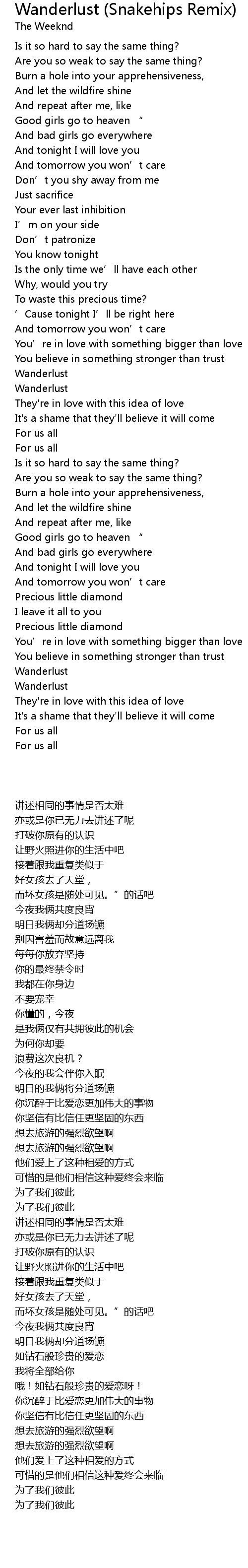 | 专辑 | Wanderlust (Snakehips Remix) |