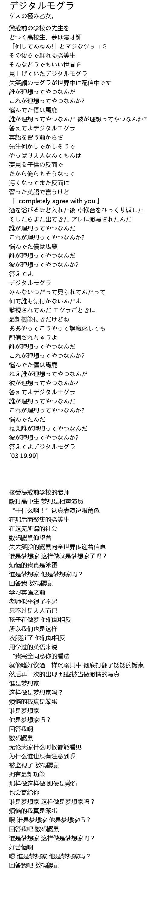 | [03:01.84] | 答えてよデジタルモグラ |