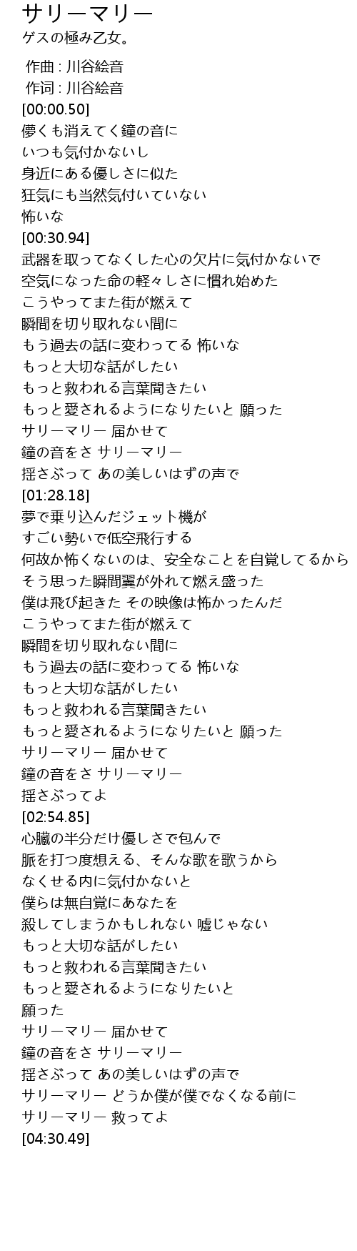 | [04:16.01] | サリーマリー どうか僕が僕でなくなる前に |