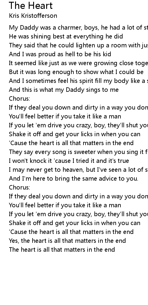 'Cause the heart is all that matters in the end |
