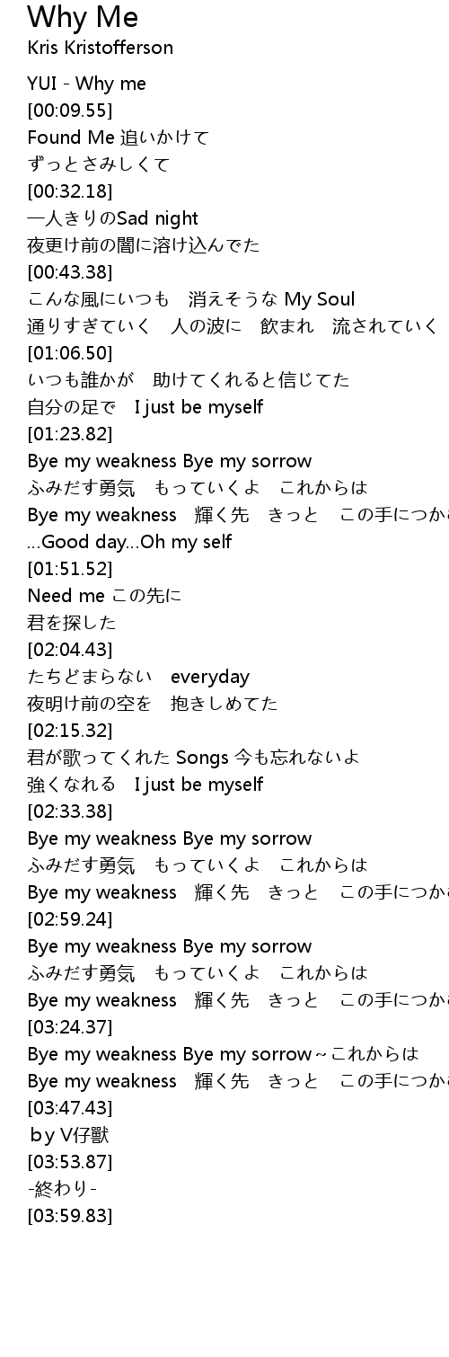 | [02:33.97] | Bye my weakness Bye my sorrow |