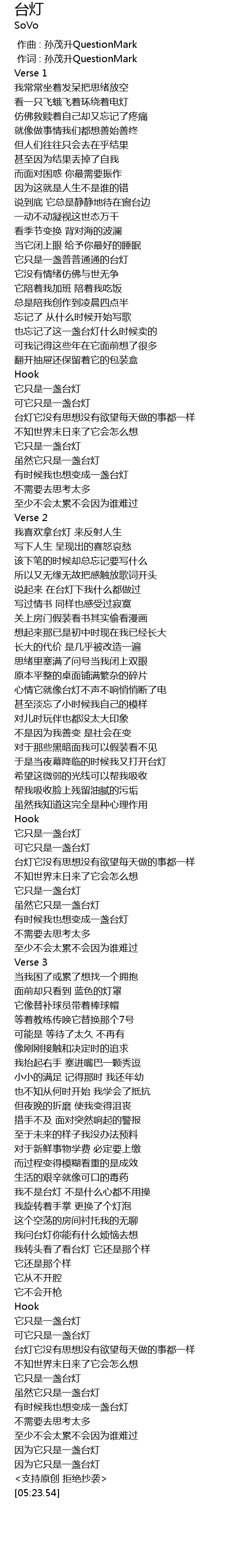 | [00:01.00] | 作词 : 孙茂升QuestionMark |