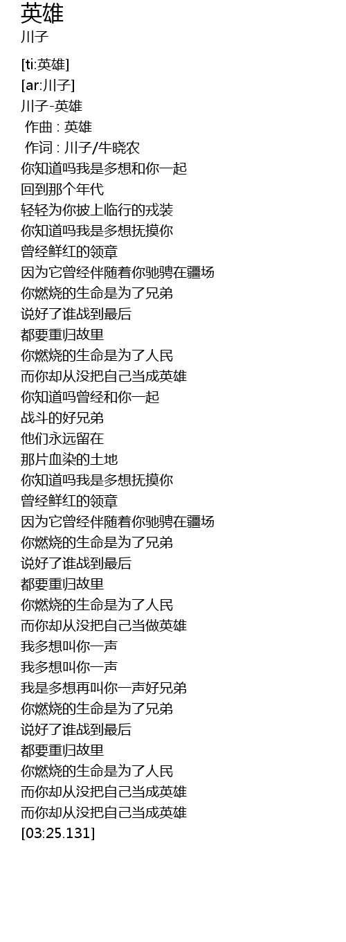| [03:06.130] | 你燃烧的生命是为了人民 |