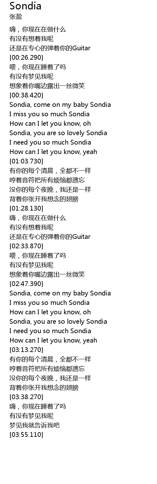 | [00:39.030] | Sondia, come on my baby Sondia |