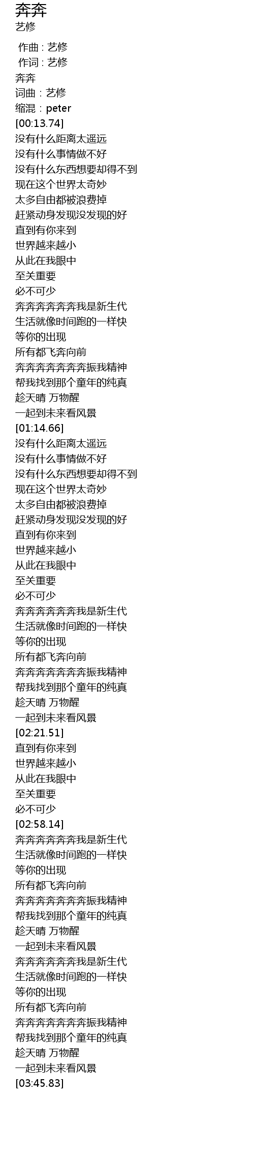 | [03:21.26] | 奔奔奔奔奔奔我是新生代 |