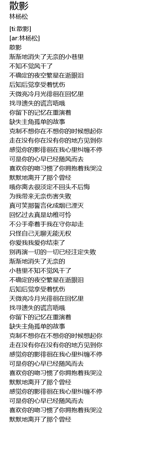 | [00:43.312] | 找寻遗失的谎言唔哦 |