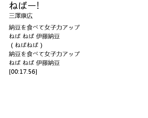 | [00:13.28] | ねば ねば 伊藤納豆 |