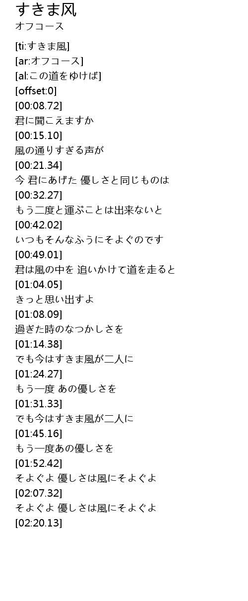 | [00:43.33] | いつもそんなふうにそよぐのです |