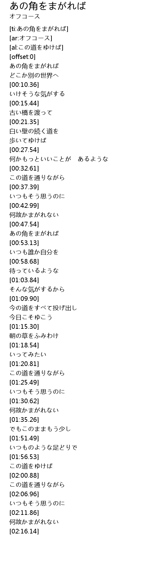 [ti:あの角をまがれば] |