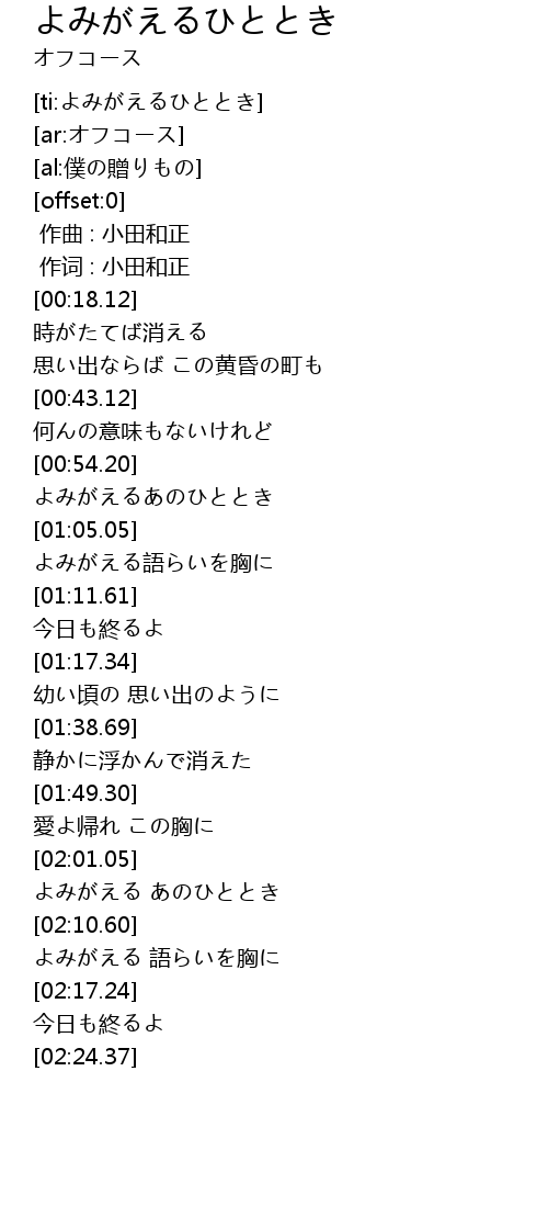 | [ti:よみがえるひととき] | |