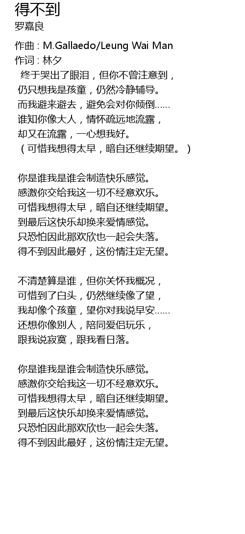 | 得不到因此最好,这份情注定无望。 | |