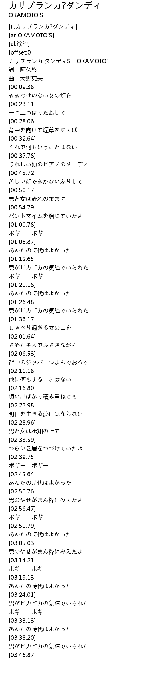[ti:カサブランカ?ダンディ] |