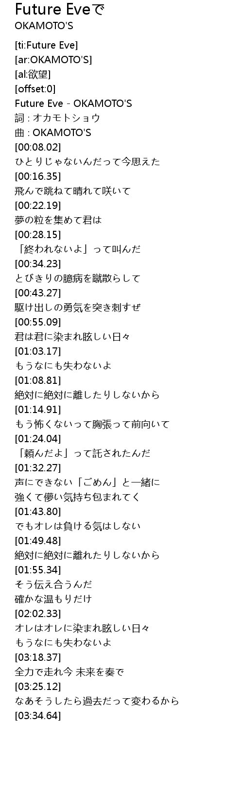 | [00:01.33] | Future Eve OKAMOTO' S |