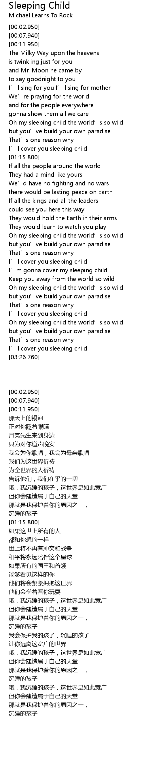 | [02:19.810] | I' m gonna cover my sleeping child |