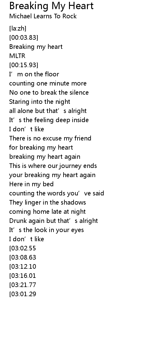 | [03:34.08][03:08.63][02:18.49] | for breaking my heart |