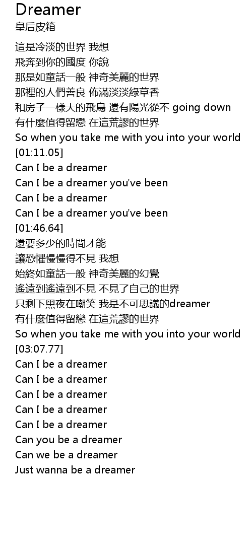 | [03:45.33] | Just wanna be a dreamer |