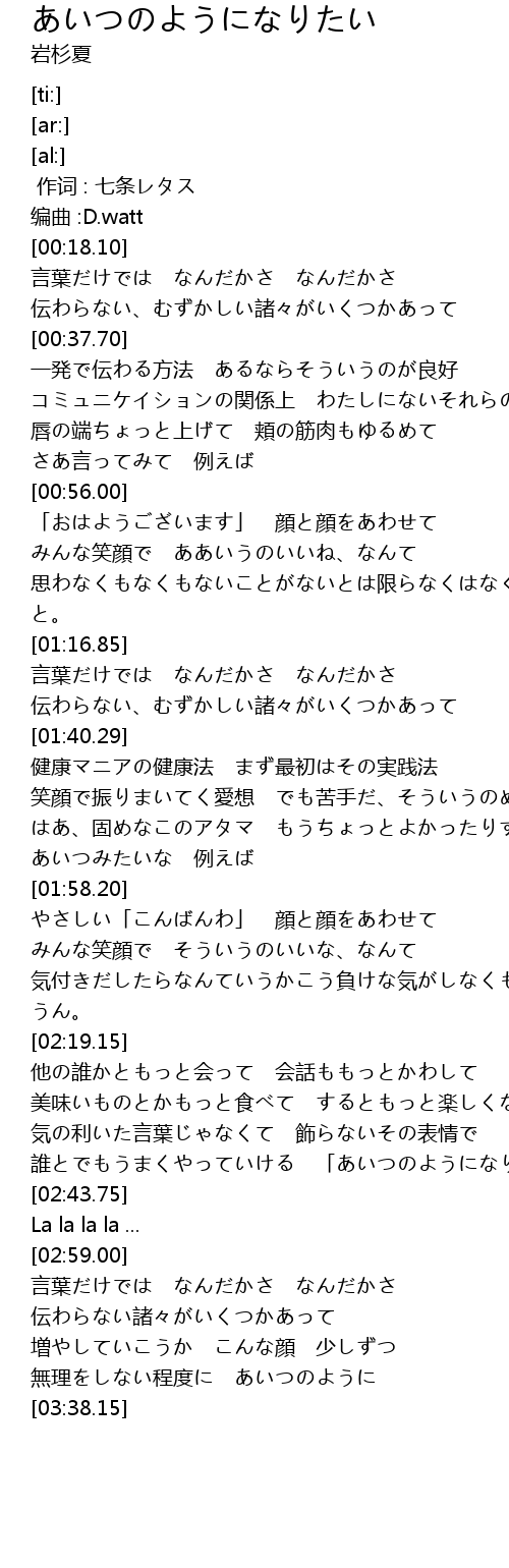 | [02:35.50] | 誰とでもうまくやっていける 「あいつのようになりたい」 |