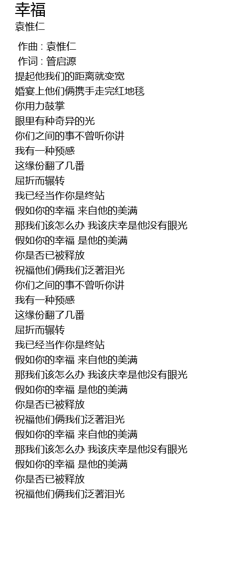 | [02:24.76] | 假如你的幸福 是他的美满 |