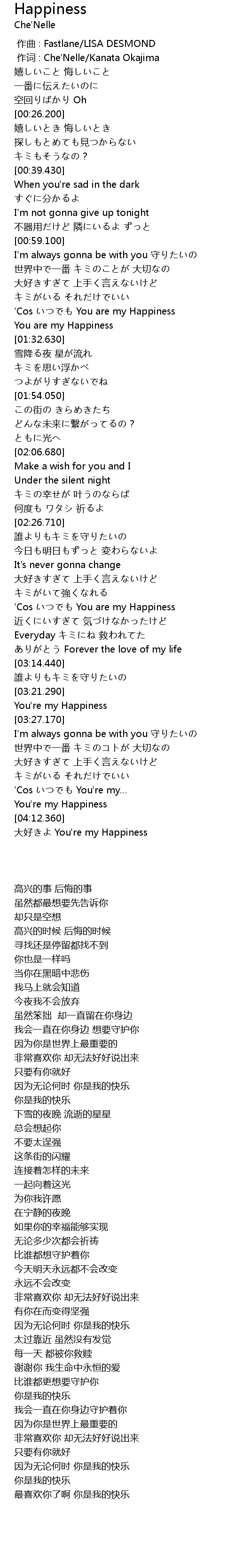 | [02:51.200] | 'Cos いつでも You are my Happiness |