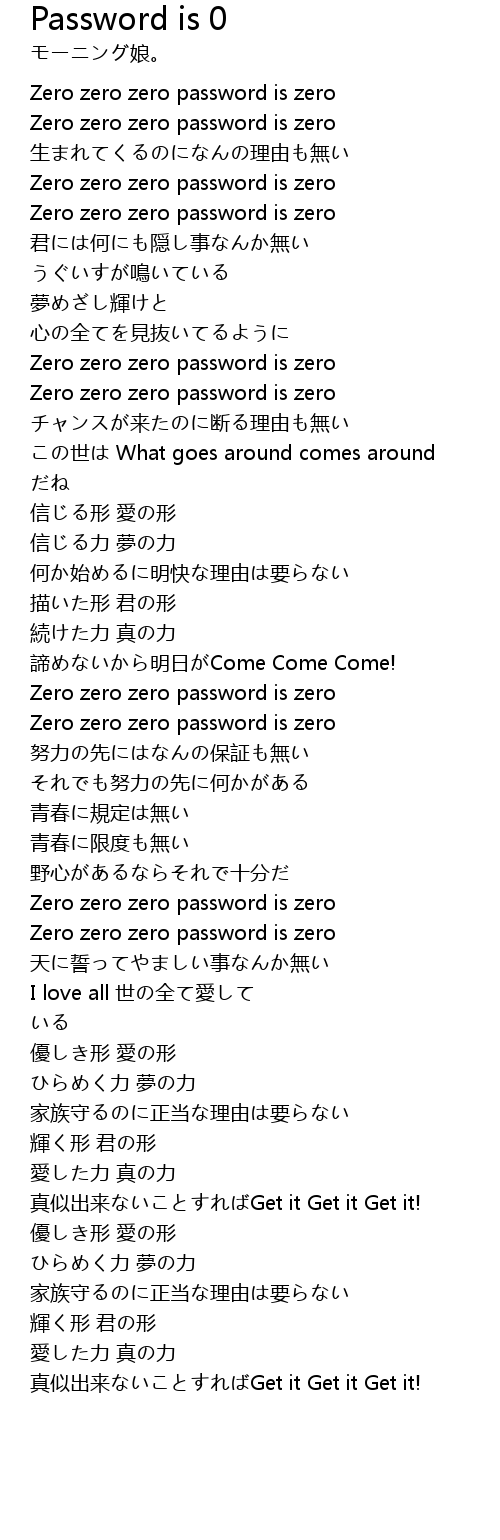 | [00:22.65] | Zero zero zero password is zero |